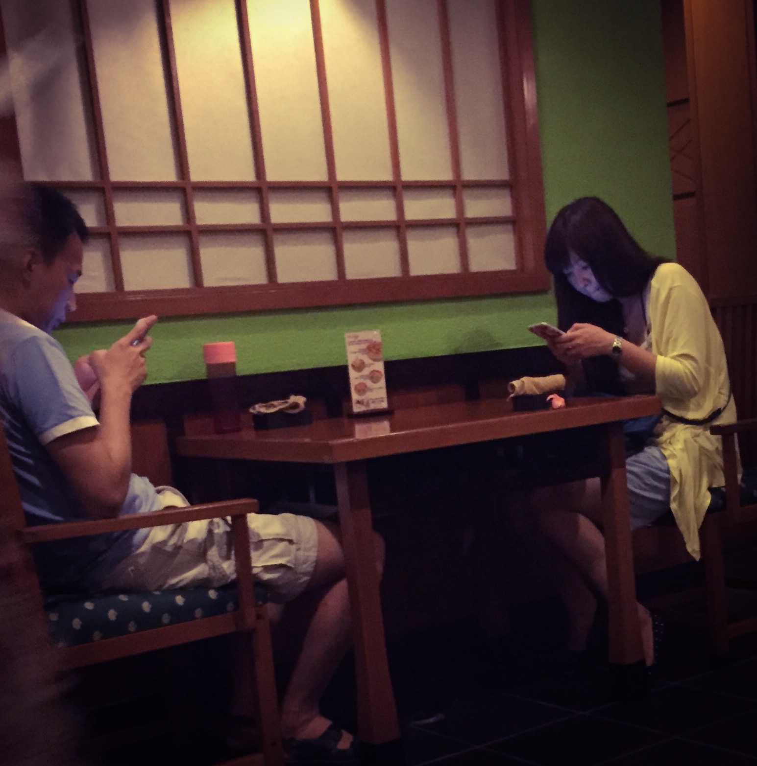 Uanset, om du er ude for at opleve kulturelle seværdigheder, ligger ved poolen/på stranden, sidder og spiser på restaurant eller er ude at shoppe i butikker, står de klar med den nyeste teknologi. Jeg observerede et par over et par timer på en restaurant. På intet tidspunkt under hele middagen, talte de til hinanden. Overhovedet. De sad med hver deres Iphone (så meget for den hygge).