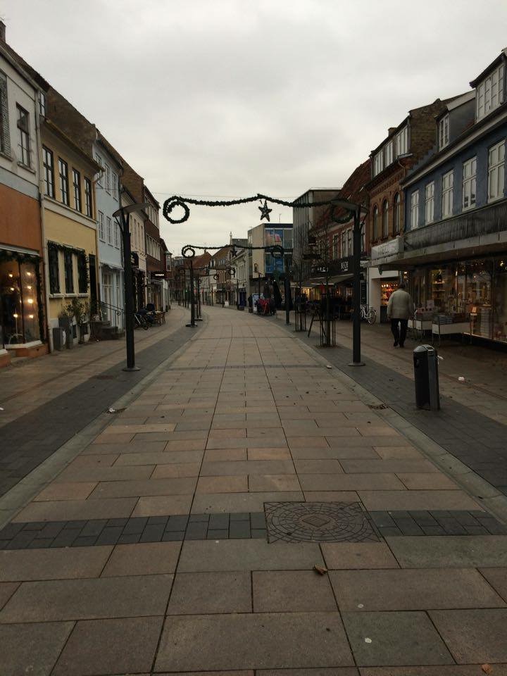 Man kan ligefrem mærke den varme julestemning på billedet. Not! Jeg blev faktisk sådan lidt trist for en uges tid siden. Det var søndag, og jeg var i Skanderborg på besøg hos min familie. Jeg havde handlet julegaver fredag i Århus, hvor jeg også har noget af min familie boende. Jeg behøver nok ikke skrive, at der var temmelig mange mennesker i byen for at handle. Der var liv og glade dage, og det var vældig hyggeligt. Hele byen duftede af brændte mandler, folk købte julegaver, og sad rundt omkring på caféerne og spiste æbleskiver, eller stod ved nogle små boder og drak gløgg. Om søndagen var jeg en tur nede i Skanderborg bymidte for at handle flere gaver, også her var der faktisk pænt med mennesker på trods af regn og storm. MEN de har også været så smarte at bygge et center. Sådan et rigtigt shopping mall i forbindelse med gågaden, som egentlig ikke er en gågade, men nærmere hovedgaden i byen. Ganske vidst ikke et stort kæmpe et af slagsen, men ganske fin i størrelsen, og her var der rigtig mange mennesker. Jeg vil lige minde om, at Skanderborg har omtrent samme antal indbyggere som Kalundborg by.