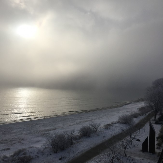Udsigten fra mit værelse på Ystad Saltsjöbad en grå januar morgen.