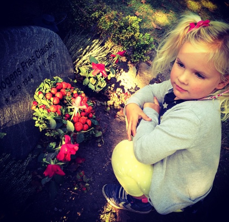 Min datter Aura-Xenia sidder ved min fars grav og fortæller sin morfar, at hun elsker ham. Lige der følte jeg mig lykkelig, trods mit savn til min far.